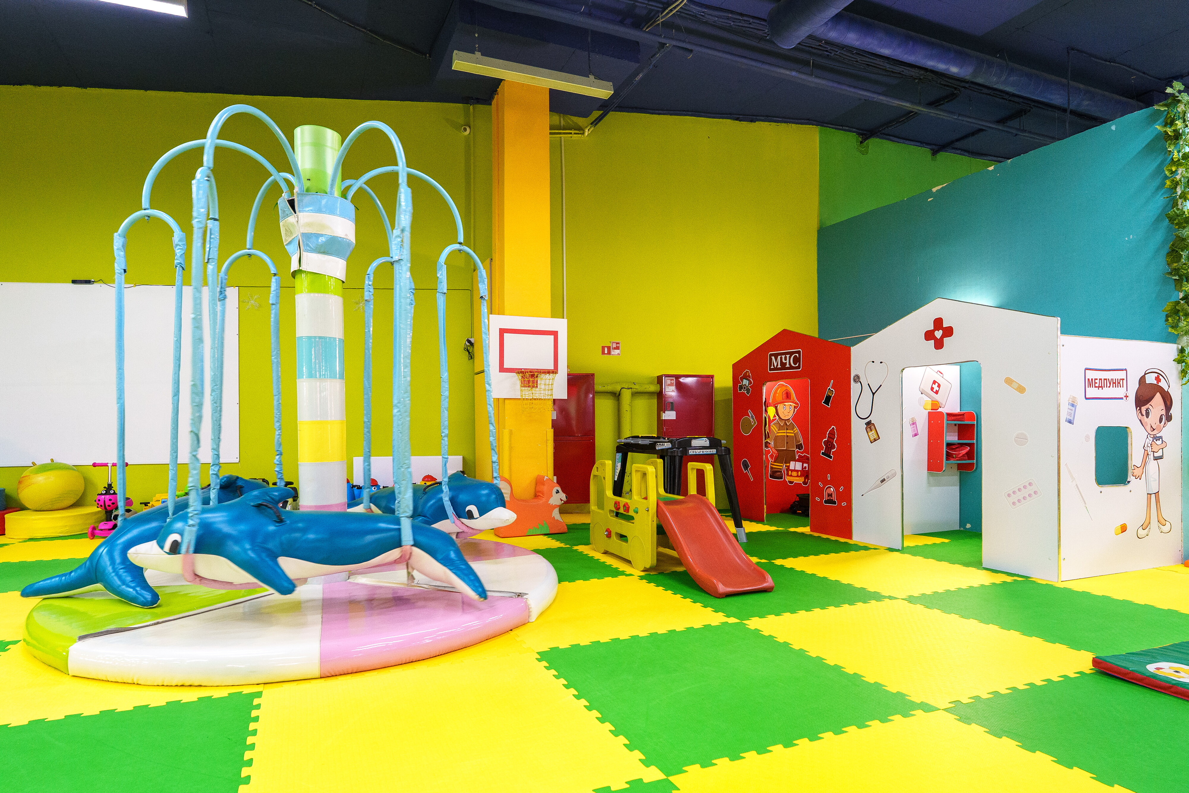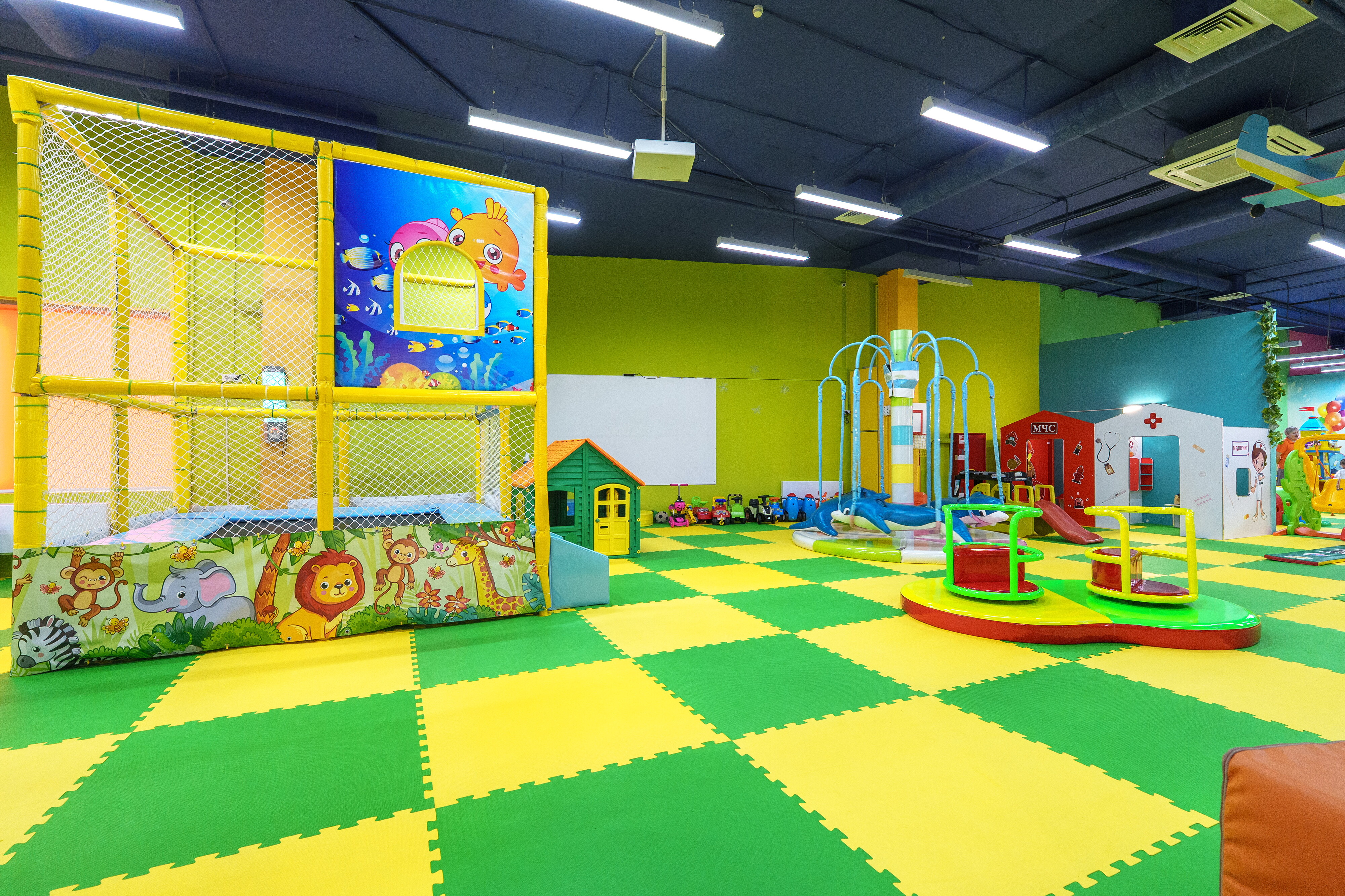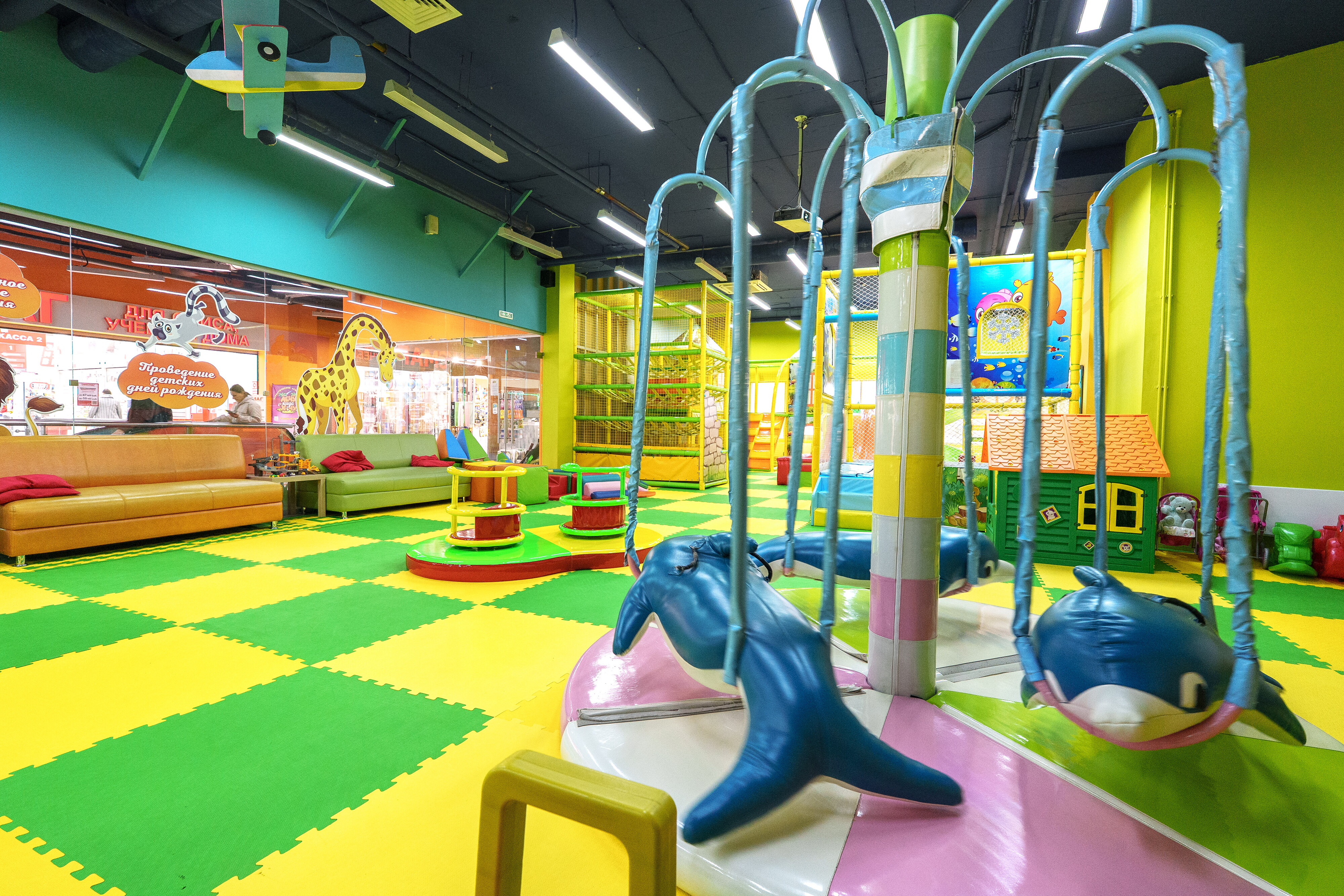Помимо этих услуг, у вас есть возможность поиграть в аэрохоккей, кикер, побывать в батутном центре, сухом бассейне, лабиринте, на игровой площадке, карусели, заказать организацию детского праздника, дня рождения и воспользоваться услугами аниматора.